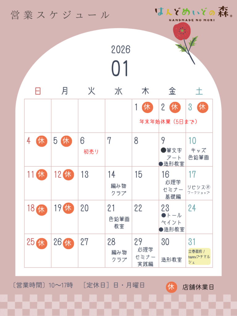 | 休業日 | 毎週日・月曜日、お盆、年末年始、臨時休業(イベント出展時など) |